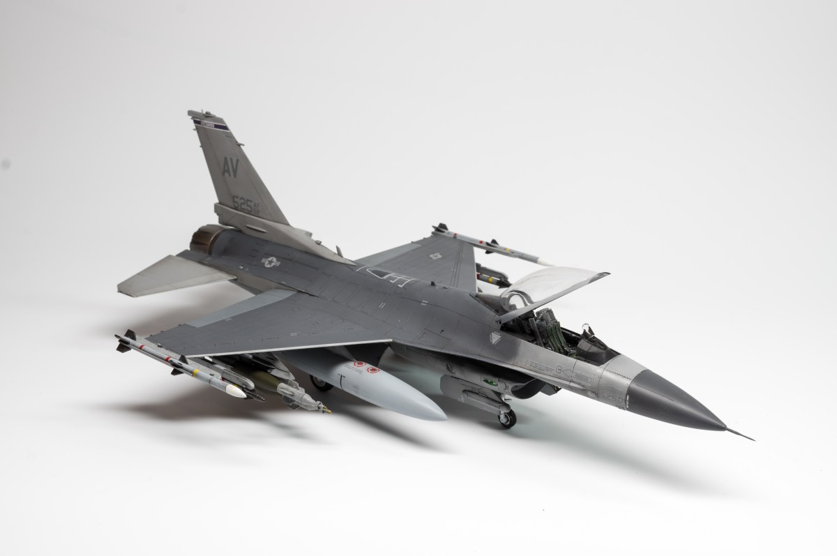 This is Hasegawa’s 1/48 F-16CJ which has been updated into a CM variant. Improvements include a Aries resin cockpit, Astra Decals and a Quickboost pitot tube. Detail on the stock kit was quite basic although it had nice refined panel lines. The kit has been modeled after an aircraft of the fighter squadron at Aviano AFB, specifically one that is taking part in Operation Inherent Resolve. Painted with Tamiya acrylics and weathered with an oil wash. Weaponry has also been used from Kinetic’s F-16F kit as well. Overall very happy to have built a “Buzzard”.