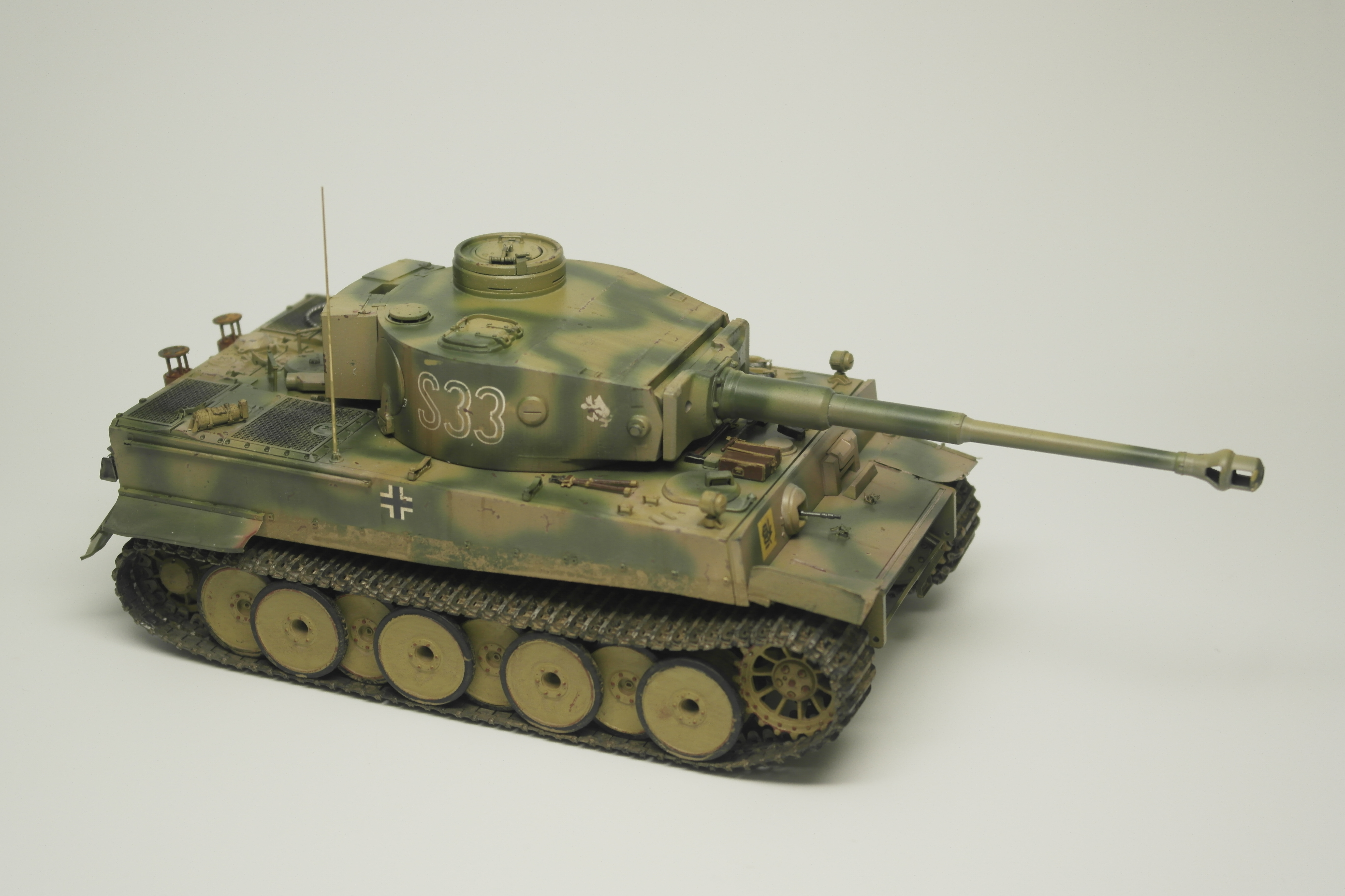 After starting in July, I have finally completed Tiger S33. After nearly a month of no work getting done in June (due to parts not arriving) The Tiger is complete. Aftermarket parts used included Fruilmodel metal tracks, RB models metal barrel and 2m Aerial, As well as Eduard Phototech. The model weighs a pretty significant amount due to all the metal!