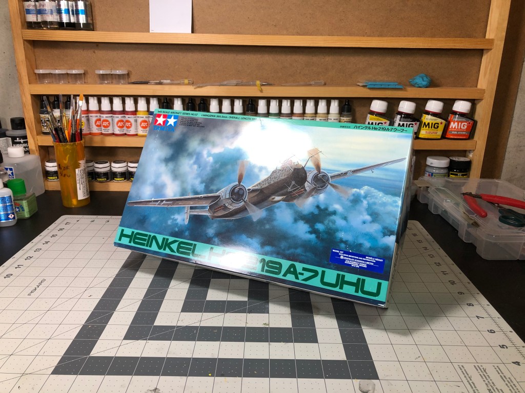 Next on the Bench was Tamiya’s late war German night fighter the He-219 “Uhu” or “Owl”. Construction started with the cockpit of course and Tamiya was nice enough to supply a metal “tub” for all the major cockpit components, this should be pretty helpful to keep the nose down. After putting a couple of nights at the bench in I have to say, I’m already quite disappointed with the kit. Not the typical Tamiya fit as it seems as I had some issues joining the wings together.