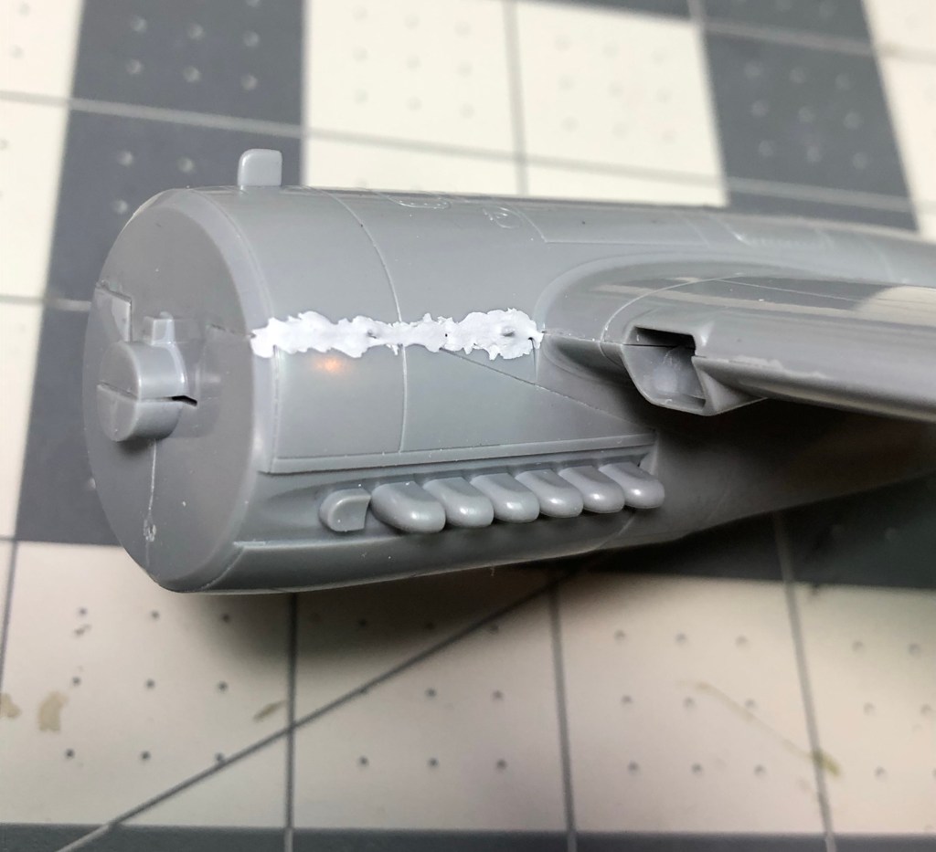 The main fuselage was definitely better fit wise but when it came to join the halves together I found a very slight gap near the nose. It’s very faint and only slightly noticeable. Non the less, I applied some Mr. Surfacer for the main body seam and sanded it down over the next couple days. it wasn’t nearly as difficult to get to as the engine gap but just tedious work instead.