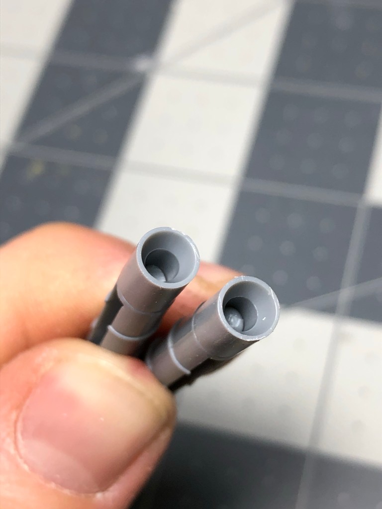 For the main fuselage cannons I drilled out the barrels pretty easily, it adds a lot to them I found and was a pretty easy process. I’m actually not sure what kind of process was intended for these since they’re fitted pointing upwards in the main body of the aircraft. whatever the reason, they look a lot better now than how they did straight out the box.