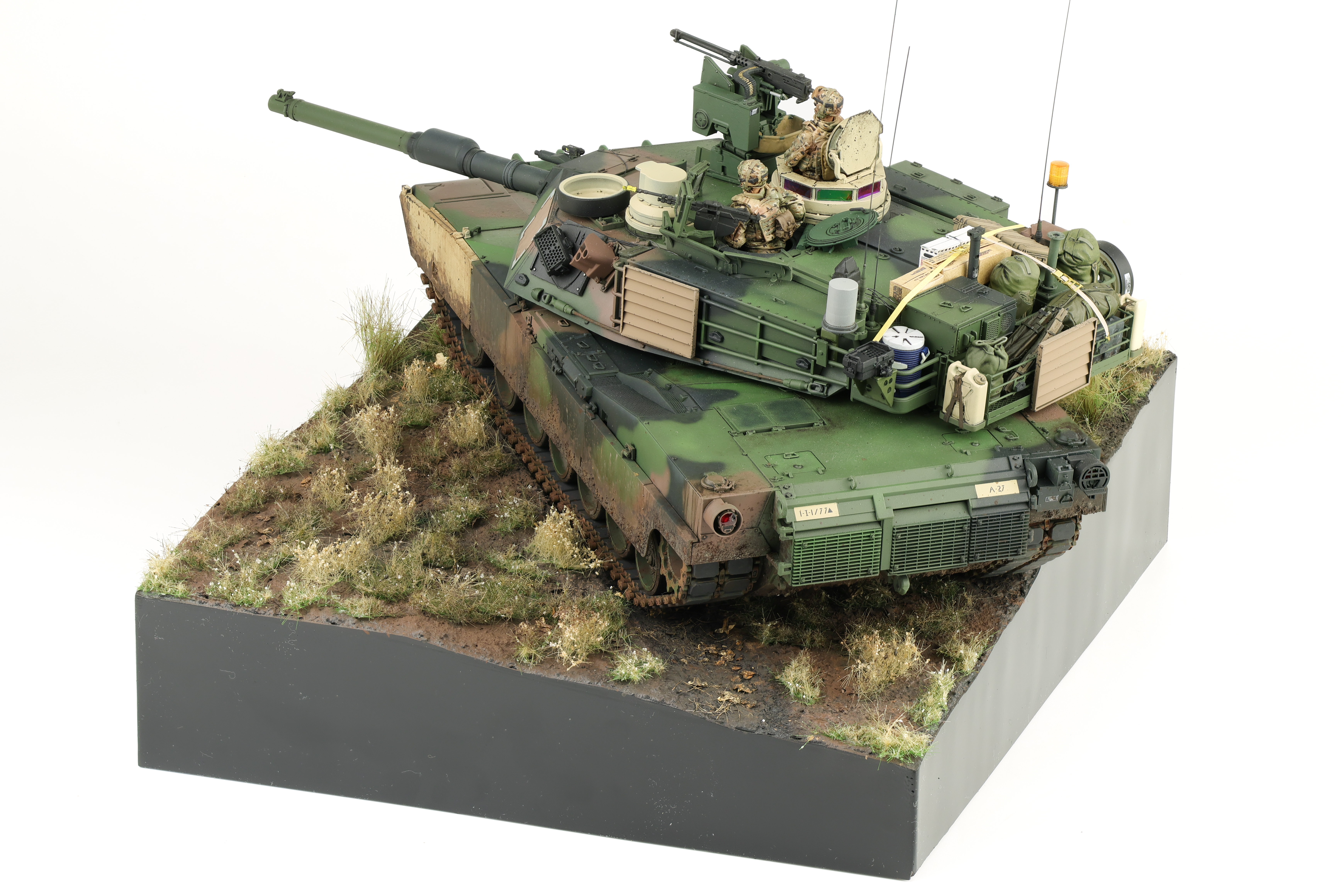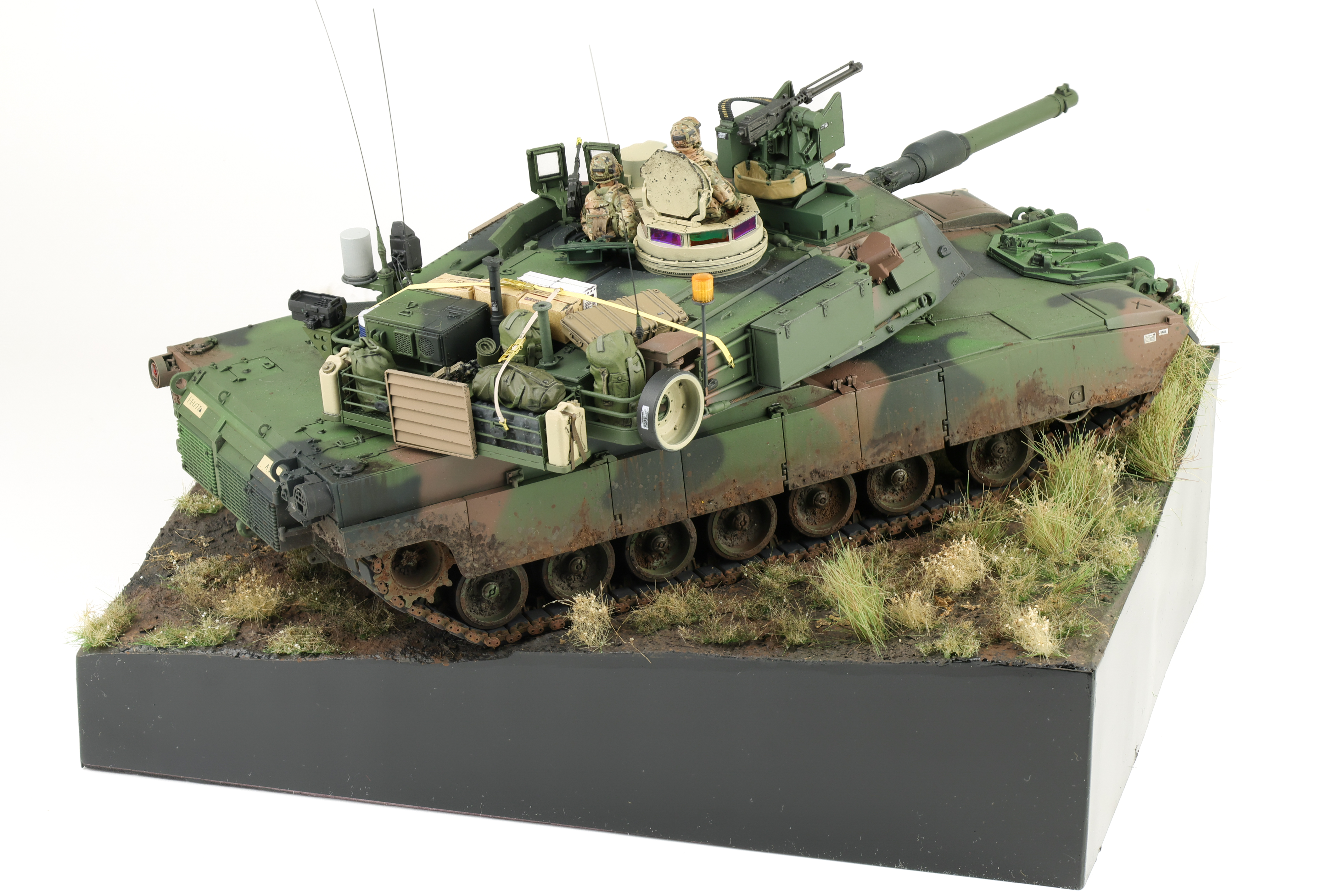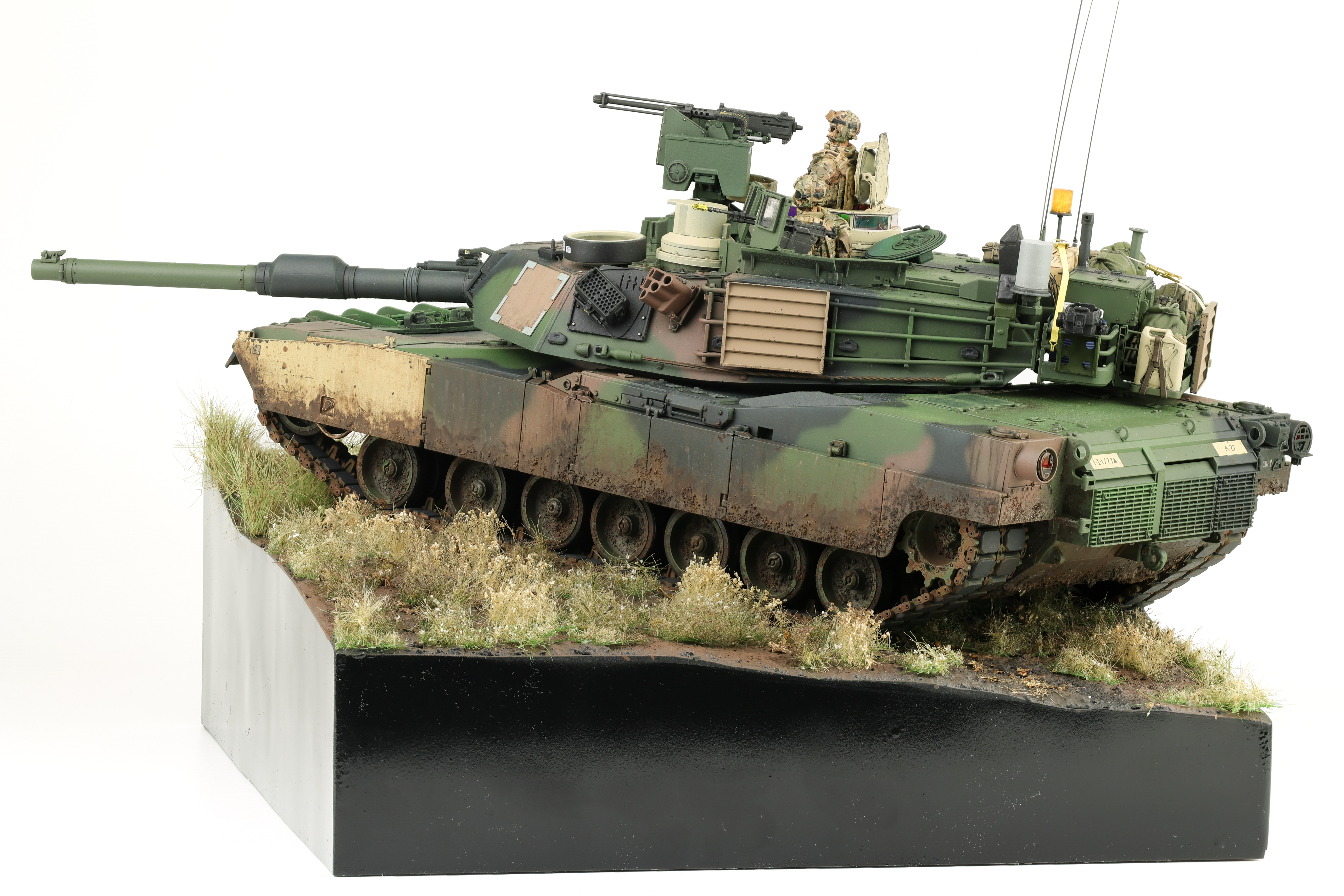At long last, the completed M1A2 project! Super happy to finally get this on off the bench. After work was compelled on the model, I built up a quick and easy base to show off the completed build. I wanted to do something different here, so I chose to pose the model in a hull down position.