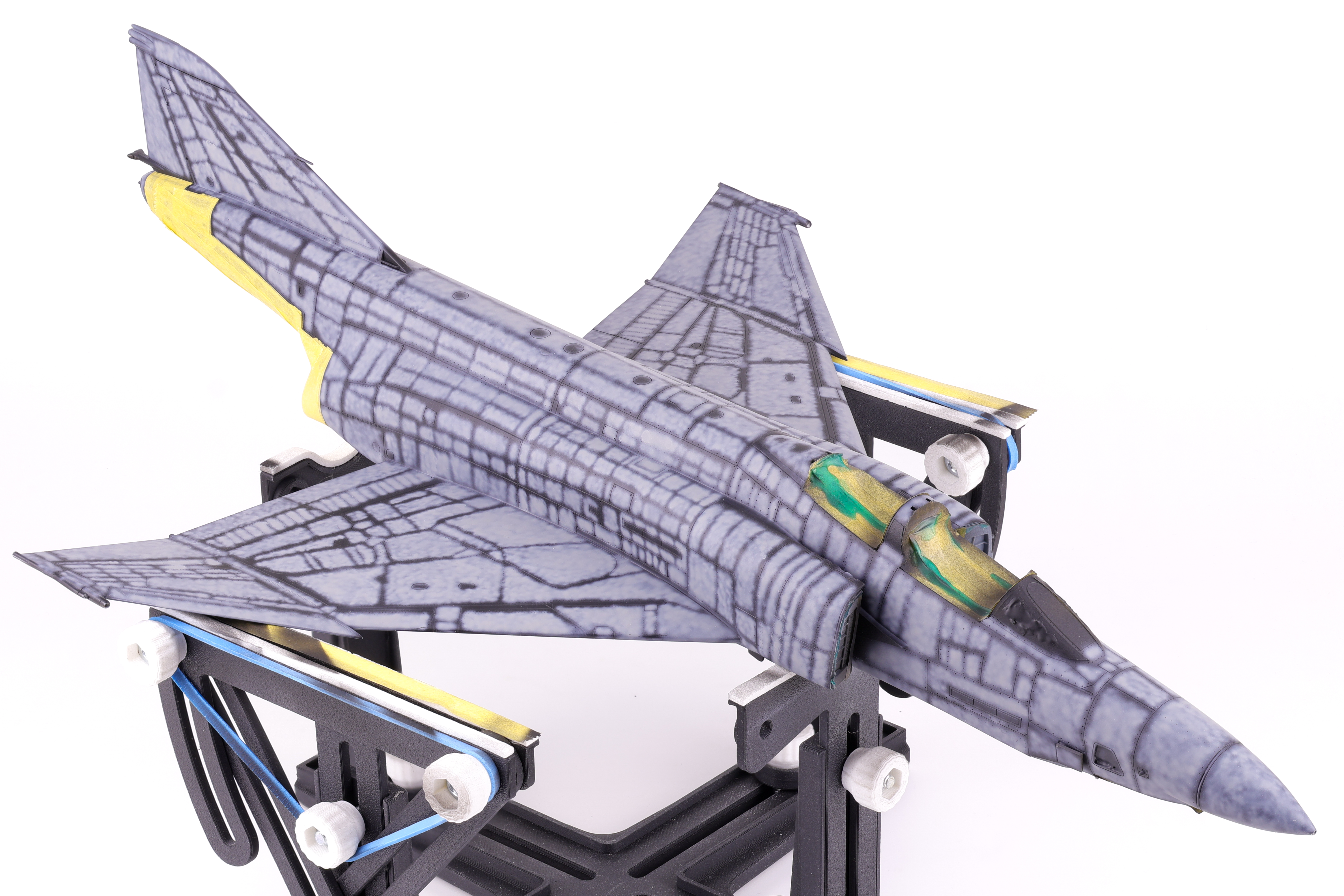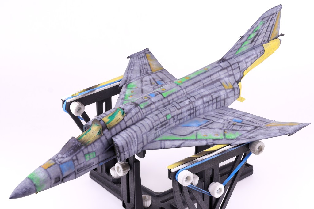 With the many pre-shading layers done, It was time to apply the final camouflage coats to the model and see if all the prior work was worth it. To do this I utilized two main shades, the first was SMS Midnight blue, the second being the aforementioned Light Blue Impulse from Mr. Color. I applied the light blue shade first, taking care not to overlap with the darker areas so not to overpower the pre-shading. I was fairly happy with how this turned out and I think that my approach here captured the duality of this distinctive scheme, in that it is incredibly vivid and striking yet also faded and worn at the same time.
