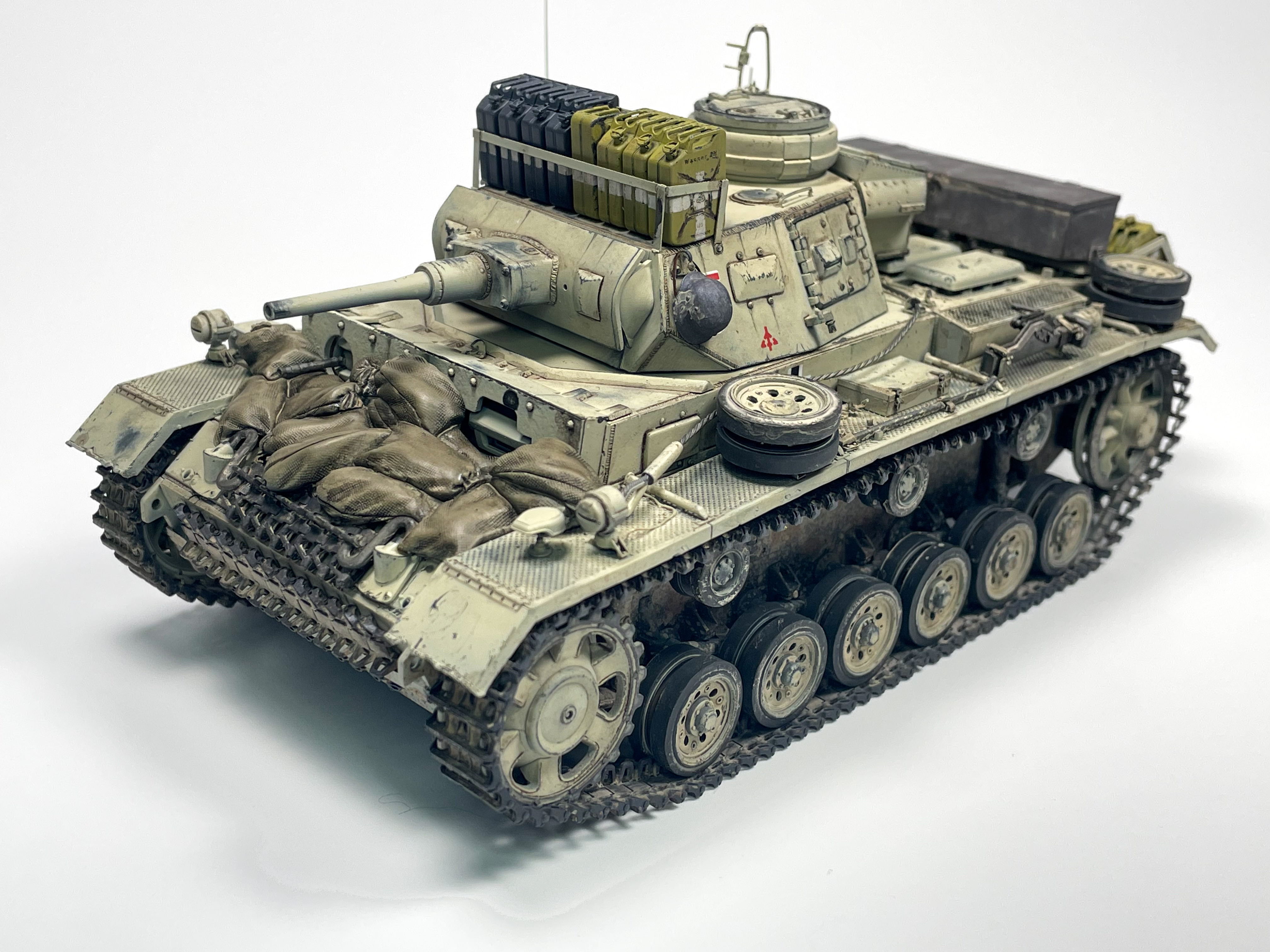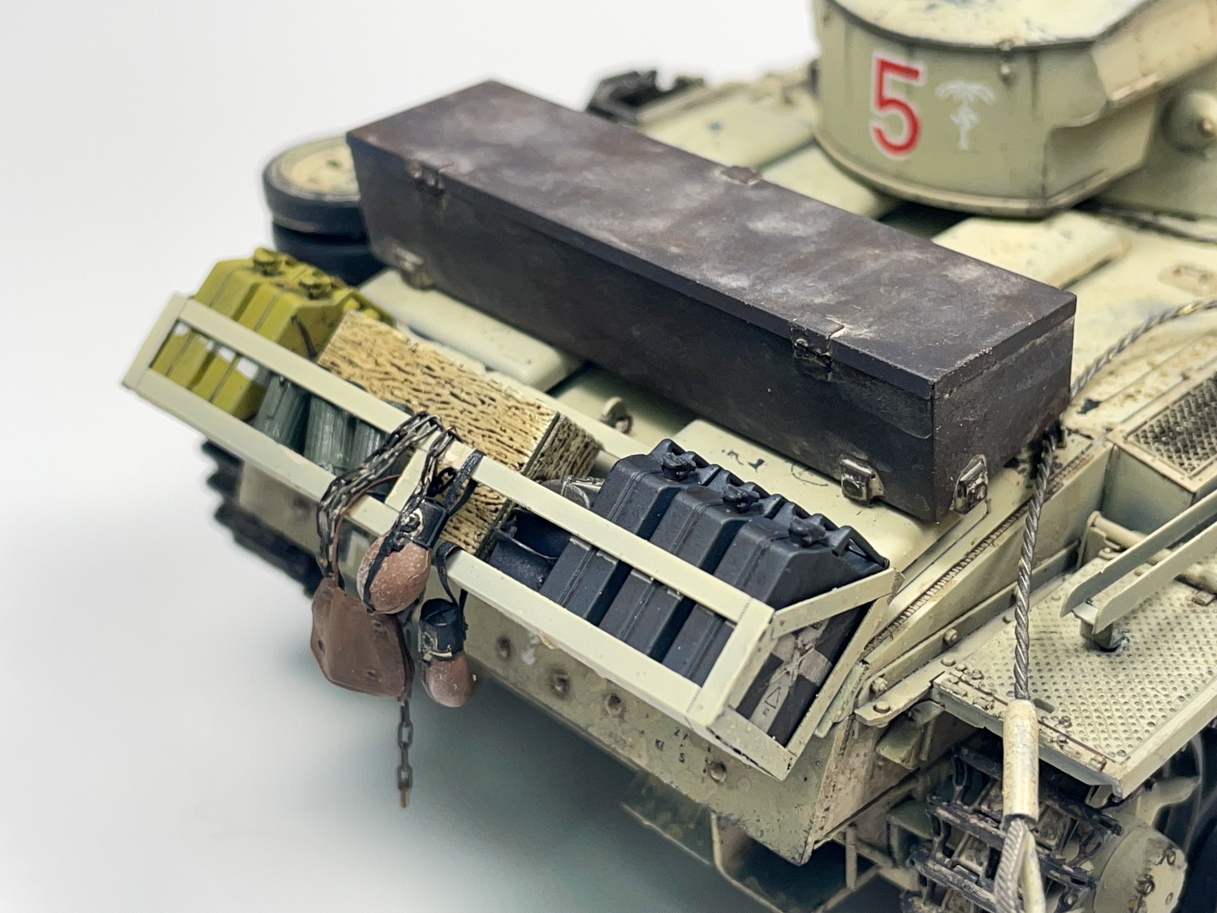 The masking was deceptive in how long I thought it would take. I had initially assumed that it would be a quick and easy process but in the end had to be split up over several days. To create the texture, I utilized the same technique I had on the Tiger, Tamiya putty thinned with extra thin cement. I had initially thought that this approach would not produce a rough enough texture to pass as anti-slip, however after heavy stippling and limited standing I think the putty method is worth trying out to achieve this specific element. Only time will tell if it looks realistic under paint.