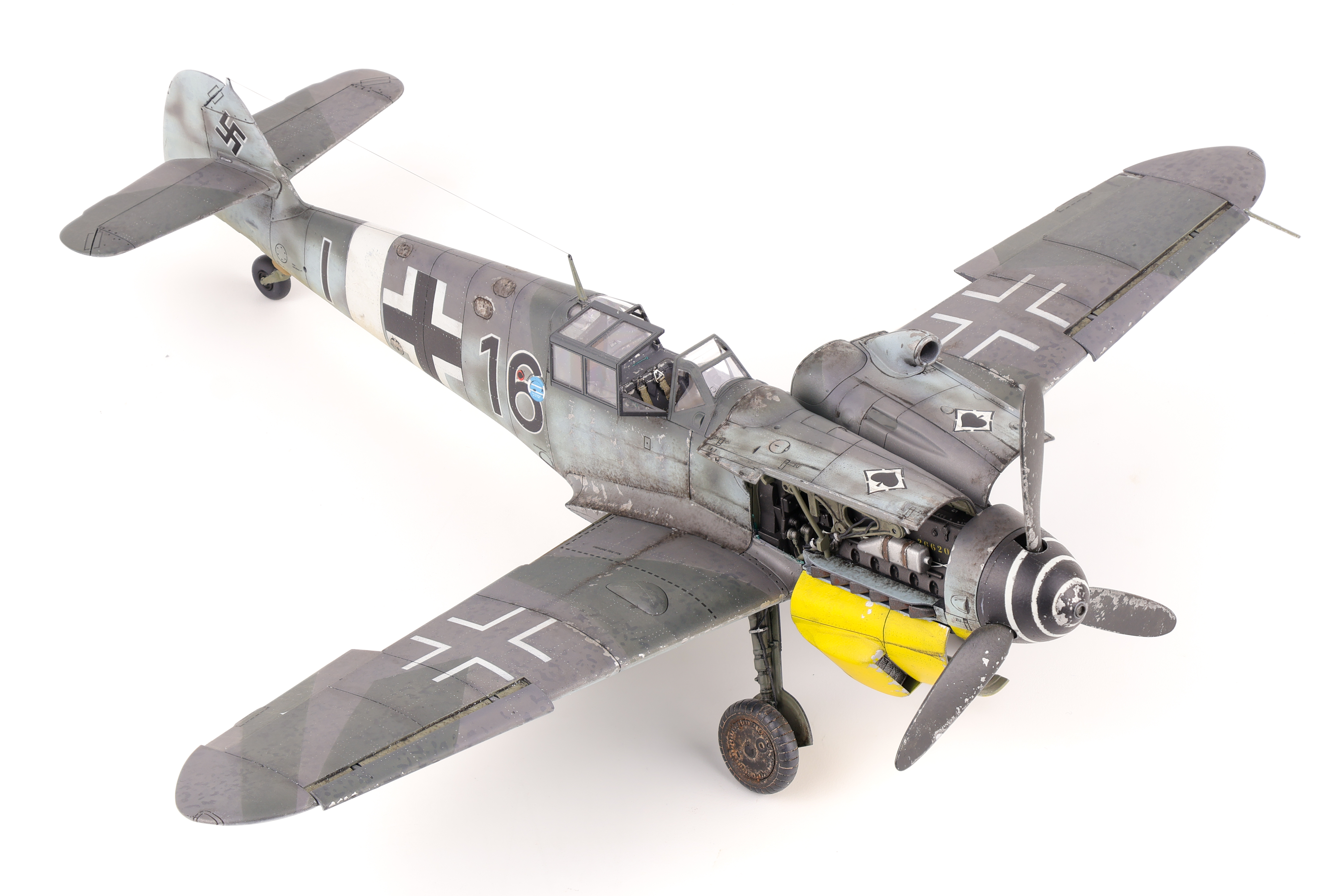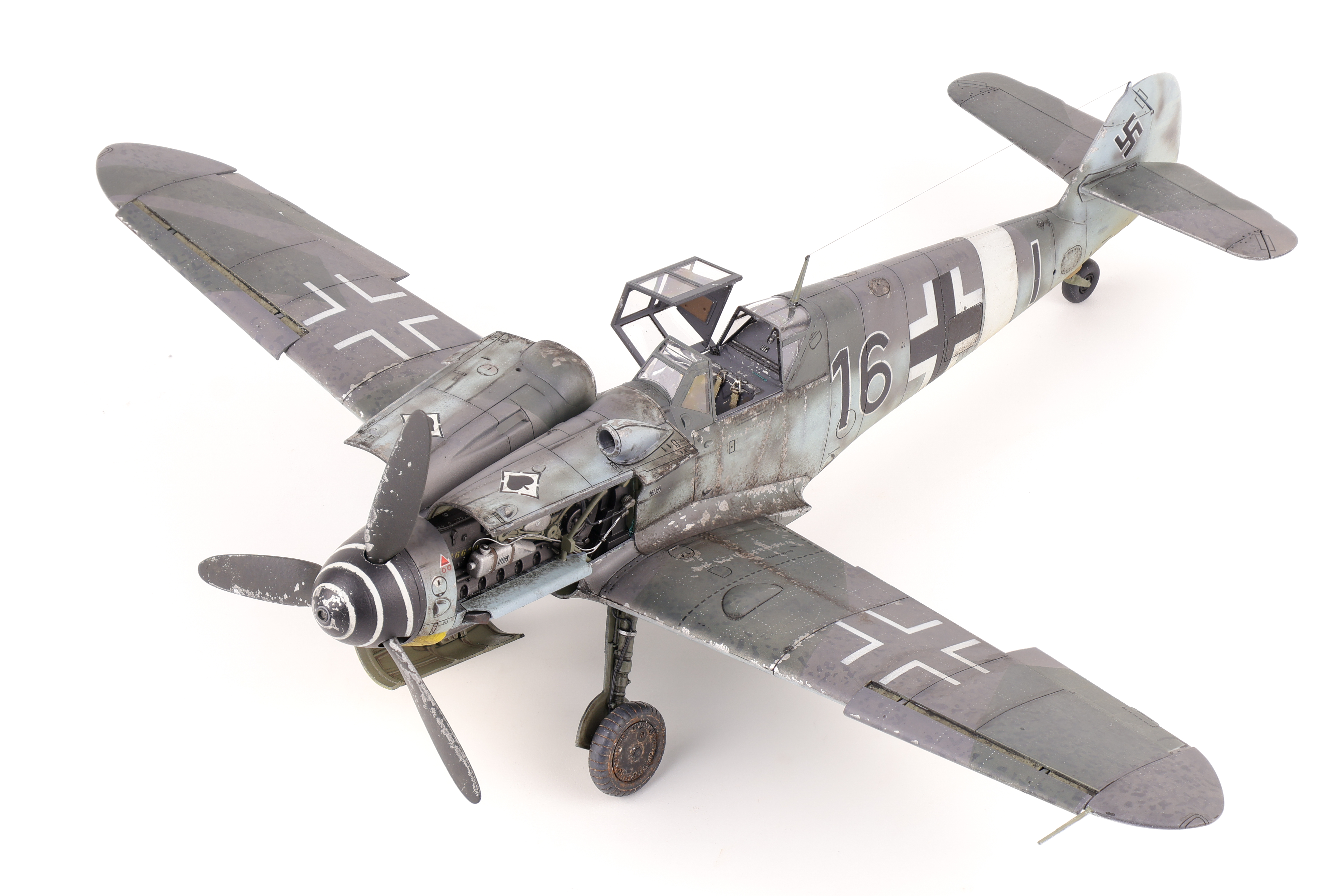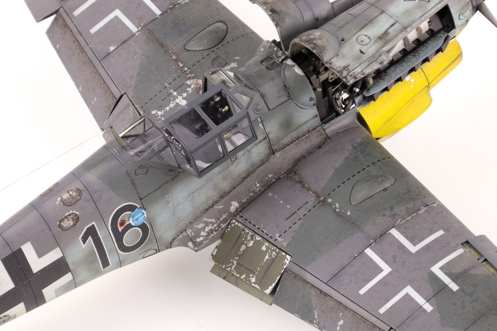After completing the markings for the 109, the next phase of the build was the main weathering process. After sealing the model in a coat of GX100 gloss varnish, I got to work with a dark oil wash.