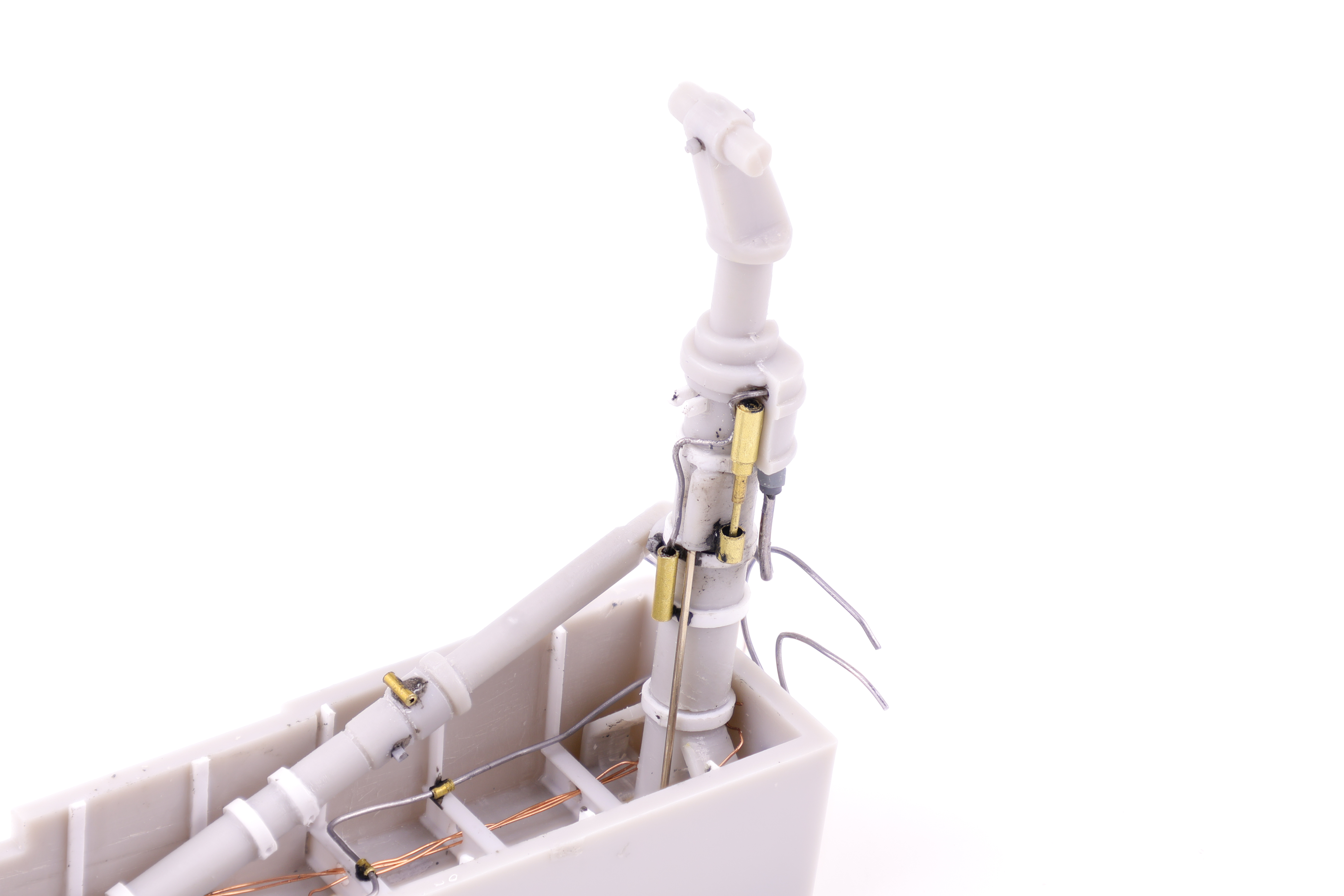 For the rest of the added detail I used a mix of brass tubing, lead and copper wire along with Anyz 3d printed connectors. I think that I achieved my goal of having the area look busy why not being completely unwieldy during the painting and weathering phase.