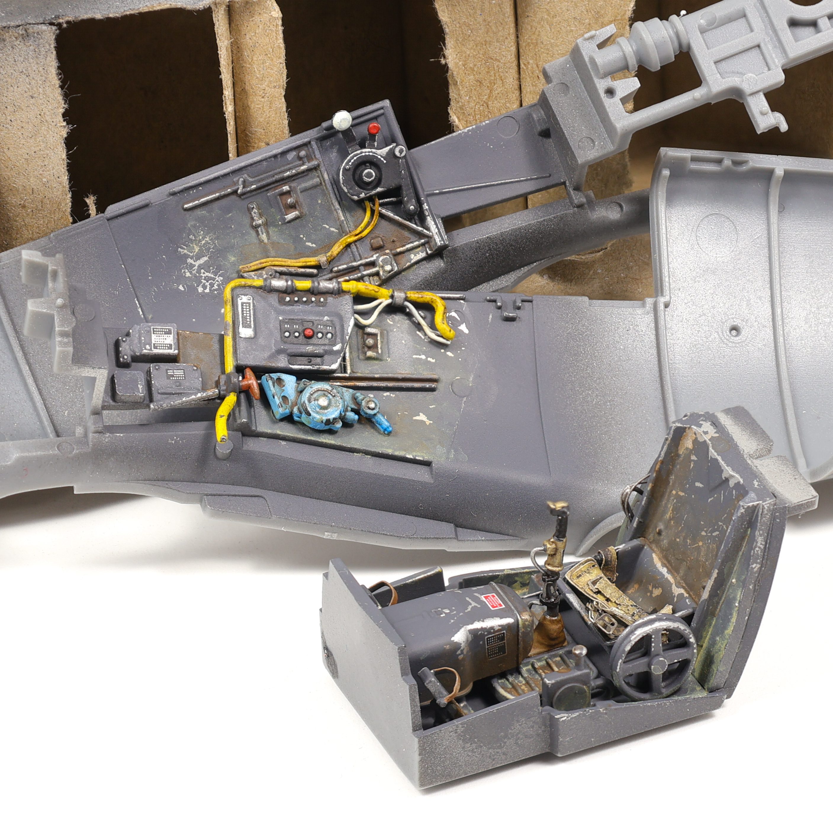 After completing the majority of work to do on the cockpit tub, I turned my attention to the instrument panels. As detailed in the previous section, I opted to completely remove the detail from the panels and replace it with my own custom made instruments. While it was a bit nerve wracking to take knife to plastic I was pleasantly surprised with how these turned out.